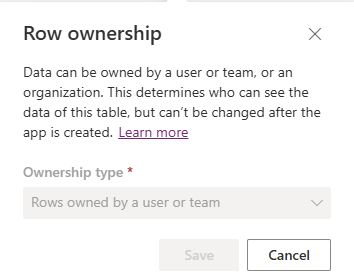 Row ownership: educates the user on who(m) is able to own data. For me, this option is greyed out currently as to not be edited.